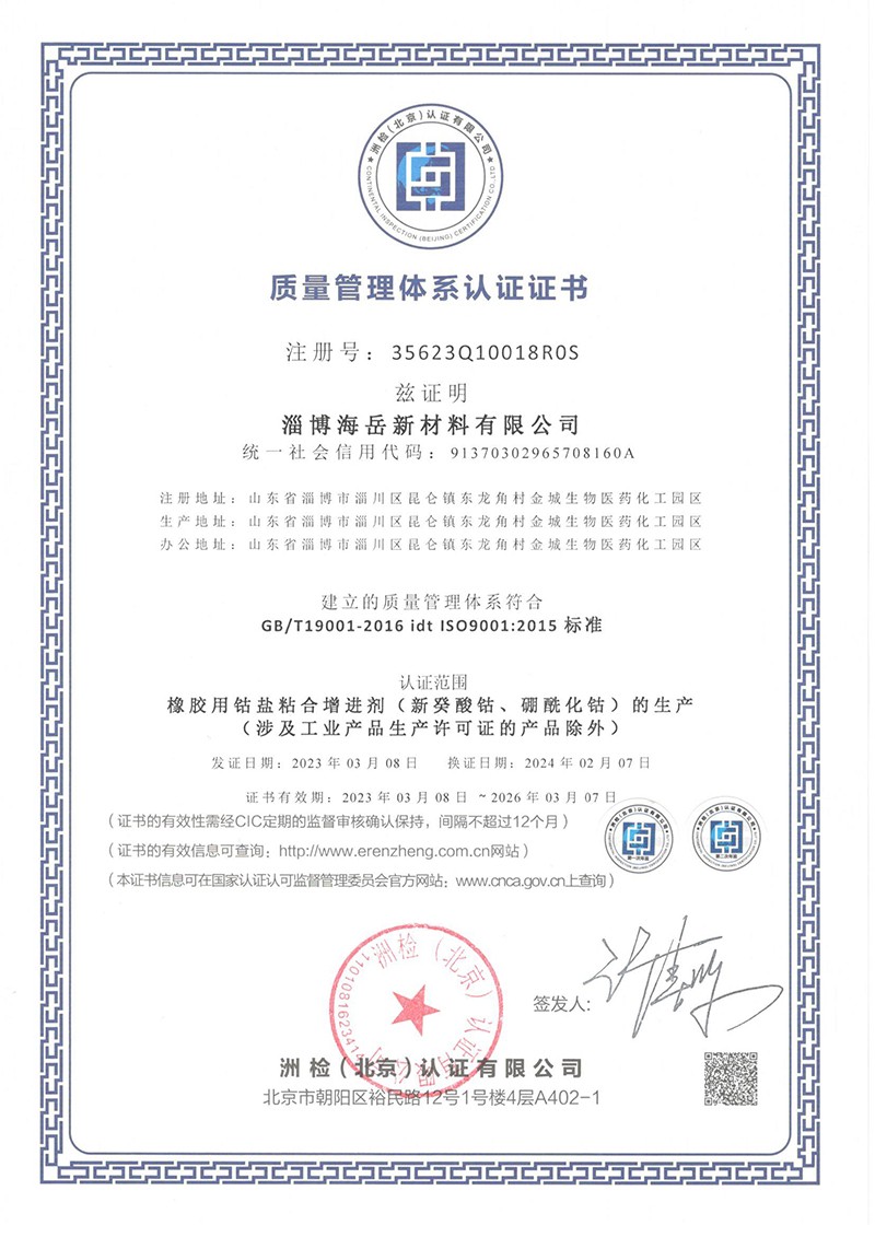新癸酸鈷、硼酰化鈷、橡膠鈷鹽粘合劑找:淄博海岳新材料有限公司